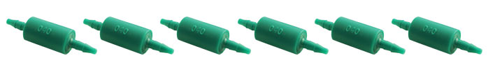 The 1/16 Barb Assortment Orifice Restrictor Kit offers seventeen (17) color-coded orifice sizes, from .003" to .040", for use with 1/16" I.D. flexible tubing. There are six (6) of each orifice size included in this kit.