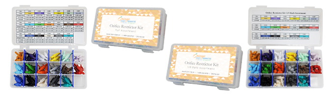 These In-Line Orifice Restrictor Kits represent our most popular orifice restrictors! All four of our orifice assortment kits come in a clear, polypropylene assortment case. 102 Precision Orifice Restrictors in Every Kit: